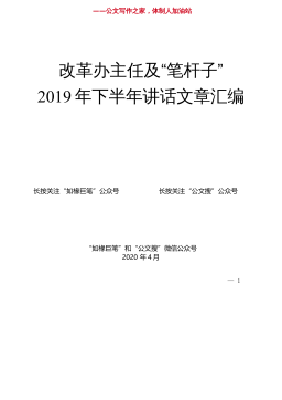 “金刚钻”系列№27(22篇)改革办主任及“笔杆子”2019年下半年讲话文章汇编