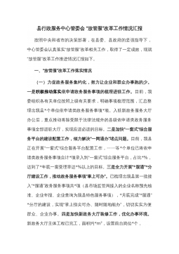 县2021年关于深化“放管服”改革优化营商环境工作落实情况的汇报