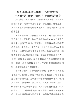 县纪委监委信访维稳工作经验材料:“四举措”助力“两会”期间信访稳定