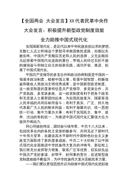 全国两会大会发言:XX代表民革中央作大会发言:积极提升新型政党制度效能 全力助推中国式现代化