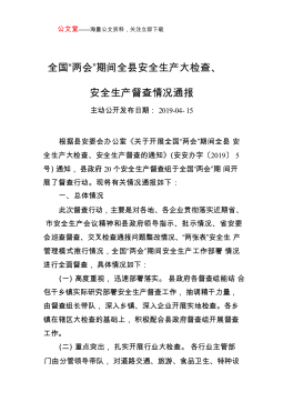 柳林县应急管理局关于全县非煤矿山“两会”“两节”期间开展安全生产集中检查的方案各企业:为了认真贯彻落实省、市、县“两节”“两会”期间有关应急管理、安全生产工作的会议精神,按照局党委的安排部署,根据《柳林县安全生产委员会办公室关于做好2020年“两节”“两会”期间全县安全生产工作的通知》(柳安办发〔2020〕4号)文件精神,就认真做好我县非煤矿山“两节”“两会”期间安全生产工作,现制定具体方案如下:一、指导思想坚持以习近平新时代中国特色社会主义思想为指导,以落实企业安全生产主体责任为核心,以构建安全风险防控和隐患排查治理体系为重点,以提升企业自主安全管理水平为目的,以严格执法检查为手段,通过开展...