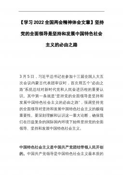【学习2022全国两会精神体会文章】坚持党的全面领导是坚持和发展中国特色社会主义的必由之路
