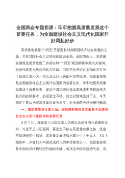 全国两会专题党课:牢牢把握高质量发展这个首要任务,为全面建设社会主义现代化国家开好局起好步