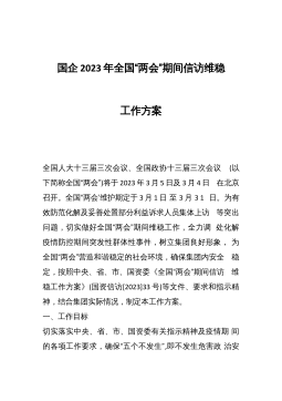 市住房和城乡建设局2021年全国“两会”期间建筑施工安全生产工作实施方案2021年是“十四五”规划开局之年。2021年3月4日至5日,中华人民共和国第十三届全国人民代表大会第四次会议和中国人民政治协商会议第十三届委员会第四次会议(以下简称全国“两会”)将在北京召开。为了给全国“两会”期间营造稳定的建筑施工安全生产环境,确保全国“两会”顺利的召开,现结合我市工作实际,制定本方案。一、总体要求和工作目标在×市委、市人民政府的领导下,按照市安全生产委员会的工作部署安排,牢固树立安全发展理念,坚持生命至上、安全第一,着力夯实安全生产工作基础,狠抓落实参建各方主体责任,狠抓施工现场安全生产隐患治理,严格...