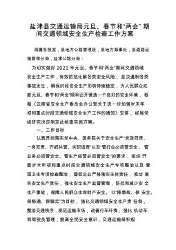 盐津县交通运输局元旦、春节和“两会”期间交通领域安全生产检查工作方案
