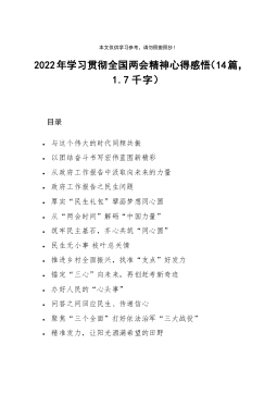 2022年学习贯彻全国两会精神心得感悟(14篇,1.7千字)