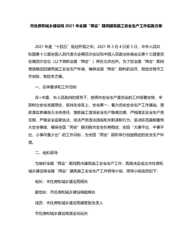 市住房和城乡建设局2021年全国“两会”期间建筑施工安全生产工作实施方案