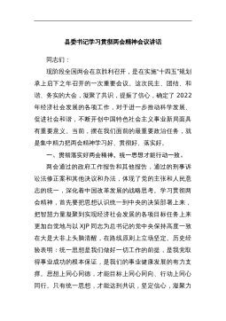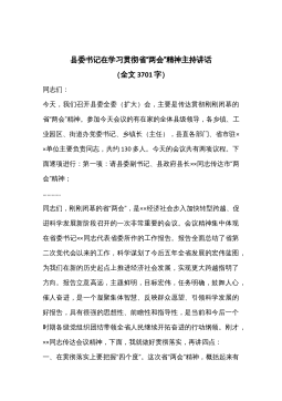 县委书记在学习贯彻省“两会”精神主持讲话(全文3701字)同志们:今天,我们召开县委全委(扩大)会,主要是传达贯彻刚刚闭幕的省“两会”精神。参加今天会议的有在家的全体县级领导,各乡镇、工业园区、街道办党委书记、乡镇长(主任),县直各部门、省市驻××单位主要负责同志,共约130多人。今天的会议共有两项议程。下面逐项进行:第一项:请县委副书记、县政府县长××同志传达市“两会”精神;…………同志们,刚刚闭幕的省“两会”,是××经济社会步入加快转型跨越、促进科学发展新阶段召开的一次非常重要的会议。会议精神集中体现在省委书记××同志代表省委所作的工作报告。报告全面总结了省第二次党代会以来的工作,科学谋划...