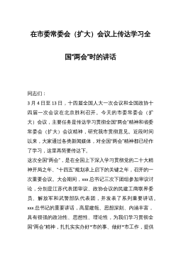 X书记在市委常委会扩大会议的主持讲话稿(关于两会精神)