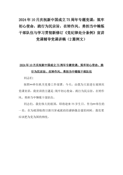 2024年10月庆祝新中国成立75周年专题党课:筑牢初心使命,践行为民宗旨,在转作风、勇担当中锤炼干部队伍与学习贯彻新修订《党纪律处分条例》宣讲党课辅导党课讲稿(2篇例文)