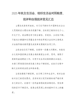 2024—2025年民主生活会全套资料汇编共80页(含:方案、主持词、会前准备、征求意见、谈话、“四个带头”对照检视剖析材料、批评建议、整改措施、会后总结)