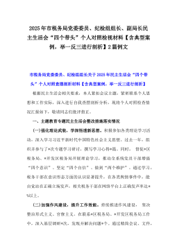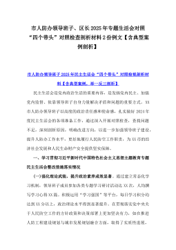 2025年民主生活会“四个带头”个人对照检查发言材料(上一年度整改落实情况)与市直机关单位党组书记个人检查材料(会前准备工作+六个方面+典型案例分析)2份文