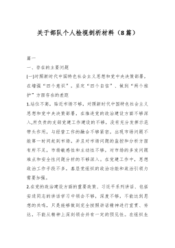 2025年班子成员民主生活会个人对照检查剖析材料根据《关于做好2024年度民主生活会有关工作的通知》要求,我深入学习贯彻习近平新时代中国特色社会主义思想,认真领悟习近平总书记关于党的建设的重要思想,仔细学习了《党章》《关于新形势下党内政治生活的若干准则》《中国共产党党内监督条例》《中国共产党纪律处分条例》和党中央关于民主生活会的有关要求。通过学习,我个人的思想认识进一步提高,政治觉悟、党性修养进一步提升。随后,我紧紧围“”绕四个带头,“”坚持三个摆进去,通过班子成员之间,与县直属各部门负责人,以及与所在党支部部分党员开展谈心谈话,进行党性分析,深刻检视反思,剖析问题产生的原因,明确了整改措施和...