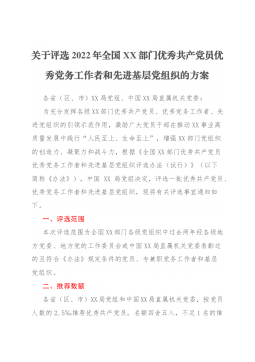 关于评选2022年全国XX部门优秀共产党员优秀党务工作者和先进基层党组织的方案
