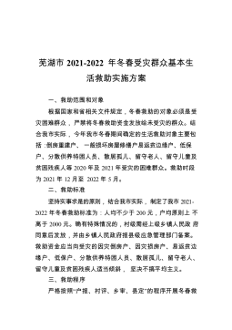 芜湖市2021-2022 年冬春受灾群众基本生活救助实施方案(20211223)