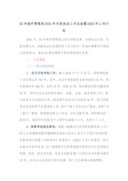 XX市城市管理局2021年行政执法工作总结暨2022年工作计划