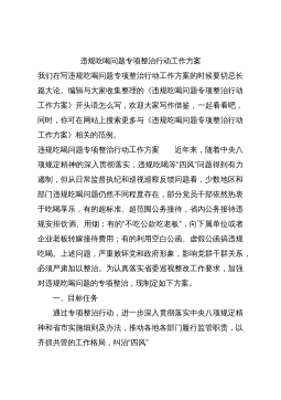 关于开展违规吃喝问题专项整治的工作方案合集2篇范文为深入贯彻党的二十大精神,坚定不移推进全面从严治党,坚持以严的基调正风肃纪,根据《市委办公室市政府办公室印发的通知》(x办文〔2023〕x号)文件要求,现就我镇开展违规吃喝问题专项整治,制定如下工作方案。一、总体要求以习近平新时代中国特色社会主义思想为指导,深入学习贯彻习近平总书记关于全面从严治党、加强作风建设的重要论述和指示批示精神,坚持问题导向,突出领导干部,通过自查自纠、监督检查、查办案件等方式,贯通监督、办案、整改、治理,集中力量、集中时间整治违规吃喝问题,教育引导广大党员干部牢记“三个务必”,自觉树立廉洁意识,构建清清爽爽的同志关系、...