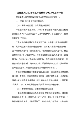 县住建局2022年工作总结和2023年工作计划范文
