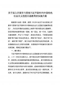 关于深入开展学习贯彻习近平新时代中国特色社会主义思想主题教育的实施方案