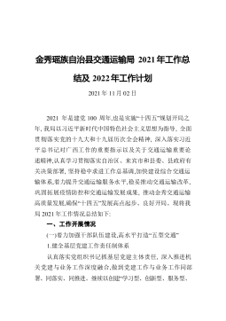 金秀瑶族自治县交通运输局2021年工作总结及2022年工作计划