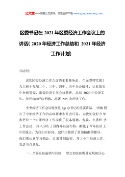 ——海量公文资料,关注立即下载www.gongwentang.com202120202021同志们:这次区委经济工作会议的主要任务是,全面贯彻党的十九大和十九届二中、三中、四中、五中全会精神,认真落实中央和省委、市委经济工作会议精神,总结2020年经济工作,分析当前经济形势,部署2021年经济工作。中央经济工作会议特别是xjp总书记的重要讲话,明确提出了今年经济工作的总体要求和重点任务,为我们做好今年和更长一个时期经济工作提供了根本遵循。省委、市委经济工作会议,深入分析了国内外经济形势,细化了今年经济工作的重点,为我们开好局、起好步提供了更加精准的指导。我们要认真学习领会,全面贯彻落实。对于今...