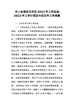 人社局近五年及2022年工作总结、2023年工作计划及今后五年工作思路