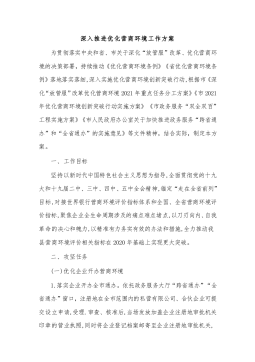 深入推进优化营商环境工作方案