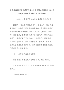 关于县2023年国民经济和社会发展计划执行情况与2024年国民经济和社会发展计划草案的报告