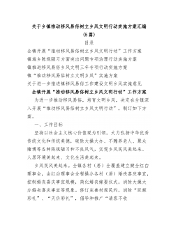 (5篇)关于乡镇推动移风易俗树立乡风文明行动实施方案汇编