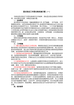 意识形态工作责任制实施方案(一)为落实意识形态工作责任制相关文件精神,强化意识形态领域引导和管理,结合我社区实际,特制定实施方案。一、总体要求意识形态工作是党的一项极端重要的工作,关乎旗帜、关乎道路、关乎国家政治安全。社区支部抓意识形态工作,必须高举中国特色社会主义伟大旗帜,坚持以马克思列宁主义、毛泽东思想、邓小平理论、“三个代表”重要思想、科学发展观和习近平新时代中国特色社会主义思想为指导,认真落实意识形态工作责任制,以培育和践行社会主义核心价值观为核心,切实加强意识形态领域管理和引导,进一步强化理论武装、正面宣传、文明创建、文化基础设施建设和队伍建设,唱响主旋律,弘扬正能量。二、工作原则按...