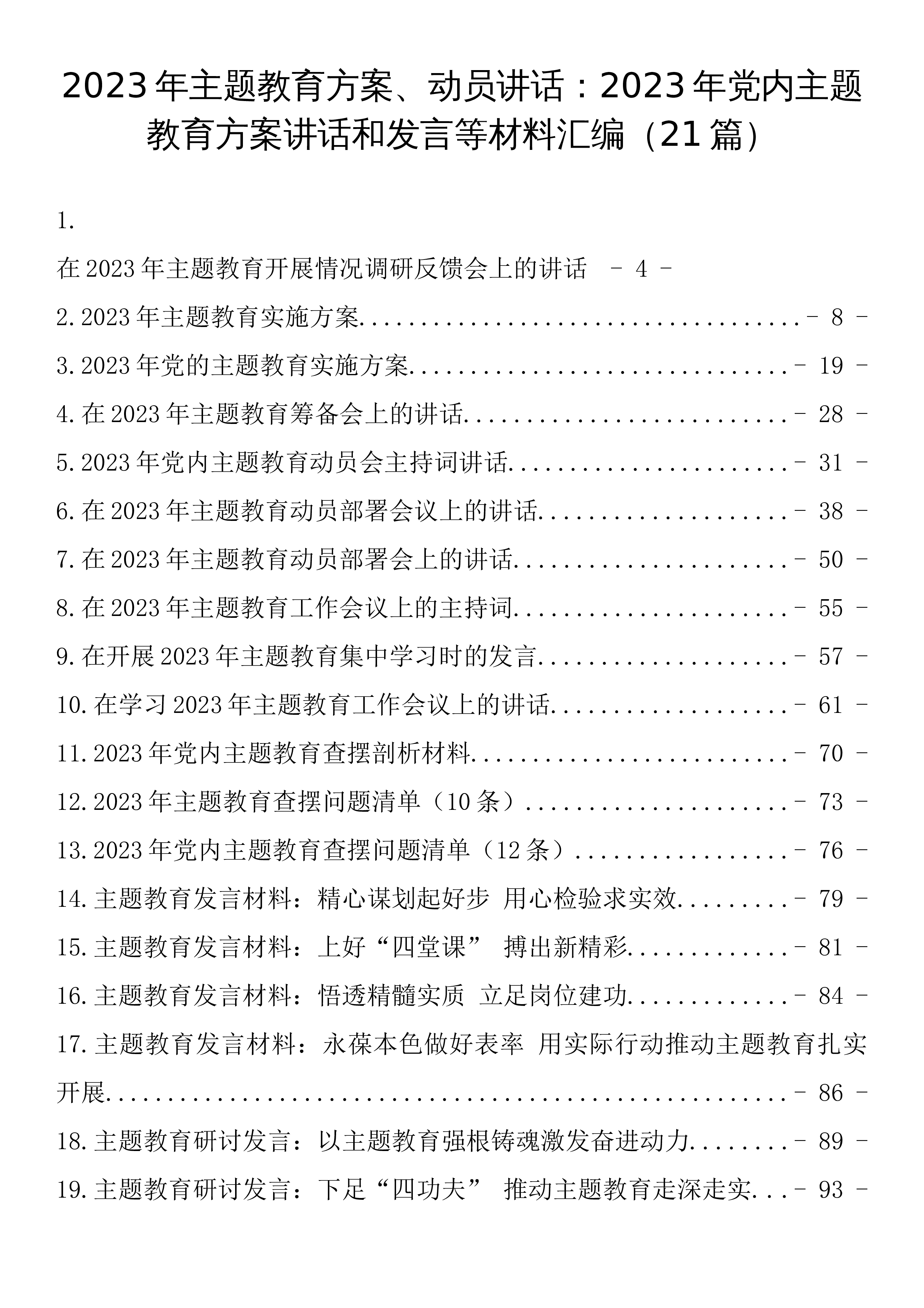 2023年主题教育方案、动员讲话:2023年党内主题教育方案讲话和发言等材料汇编(21篇)