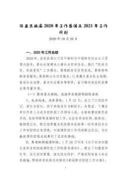 XX县民族宗教事务局2021年工作总结及2022年工作计划2021年,民宗局在县委、县政府的领导下,按照“常规工作上档次、潜能工作有突破、特色工作求飞跃”的发展思路,深度挖潜,求实开拓,圆满完成了全年各项工作任务。民族工作保持全省领先地位,宗教工作力转全市末位跃入全市先进行列,机制创新、特色工作得到省市高度认可,部分予以推广,基层治理工作队成为全省典型。一、突出主题,开拓创新,促进民族团结进步(一)抓管理,重机制,不断夯实民族工作基层基础一是完善领导体制。及时调整完善民族工作县、乡、村三级领导体制,明晰责任,严明纪律,严格考核,各履其责。二是配强工作力量。县委、县政府高度重视民族工作,按季召开...