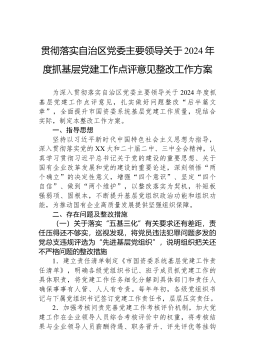 贯彻落实自治区党委主要领导关于2024年度抓基层党建工作点评意见整改工作方案
