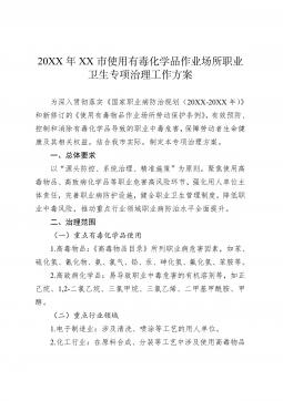 20XX年XX市使用有毒化学品作业场所职业卫生专项治理工作方案