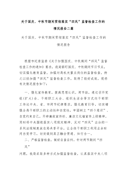 关于国庆、中秋节期间贯彻落实“四风”监督检查工作的情况报告二篇