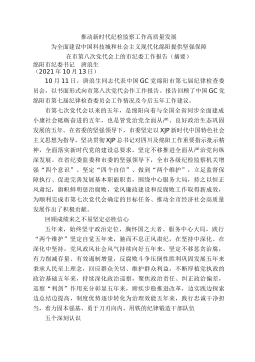 推动新时代纪检监察工作高质量发展为全面建设中国科技城和社会主义现代化绵阳提供坚强保障在市第八次党代会上的市纪委工作报告(摘要)绵阳市纪委书记唐浪生(2021年10月13日)10月11日,唐浪生同志代表中国GC党绵阳市第七届纪律检查委员会,以书面形式向市第八次党代会作工作报告。报告回顾了中国GC党绵阳市第七届纪律检查委员会工作情况及今后五年工作建议。市第七次党代会以来的五年,是绵阳向着与全国全省同步全面建成小康社会砥砺奋进的五年,也是管党治党全面从严、良好政治生态巩固发展的五年。在省委的坚强领导下,市委坚定以XJP新时代中国特色社会主义思想为指导,坚决贯彻XJP总书记对四川及绵阳工作重要指示批示...