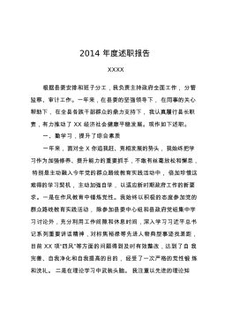 2014年度述职报告XXXX根据县委安排和班子分工,我负责主持政府全面工作,分管监察、审计工作。一年来,在县委的坚强领导下,在同事的关心帮助下,在全县各族干部群众的鼎力支持下,我认真履行县长职责,有力推动了XX经济社会健康平稳发展。现作如下述职。一、勤学习,提升了综合素质一年来,面对全X你追我赶、竞相发展的势头,我始终把学习作为加强修养、提升能力的重要抓手,不敢有丝毫放松和懈怠,特别是主动融入今年党的群众路线教育实践活动中,倍加珍惜这难得的学习契机,主动加强自学,以适应新时期政府工作的新要求。一是在作风教育中锤炼党性。我始终以积极的态度参加党的群众路线教育实践活动,除参加县委中心组和县政府党组...
