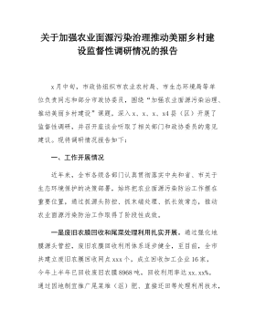 关于加强农业面源污染治理推动美丽乡村建设监督性调研情况的报告