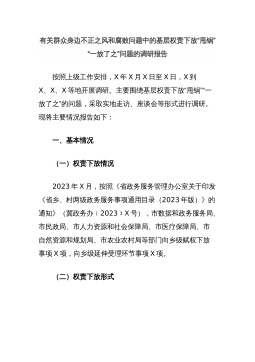 有关群众身边不正之风和腐败问题中的基层权责下放“甩锅”“一放了之”问题的调研报告