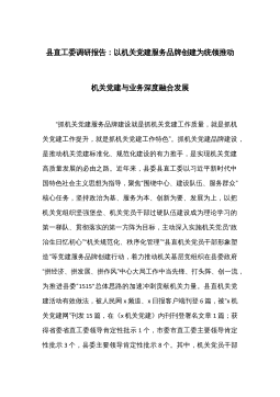 县直工委调研报告:以机关党建服务品牌创建为统领推动机关党建与业务深度融合发展