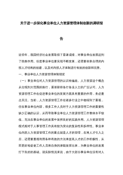 关于进一步深化事业单位人力资源管理体制创新的调研报告
