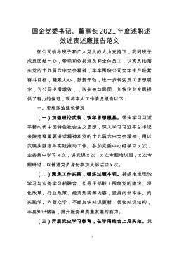 国企党委书记、董事长2021年度述职述效述责述廉报告范文