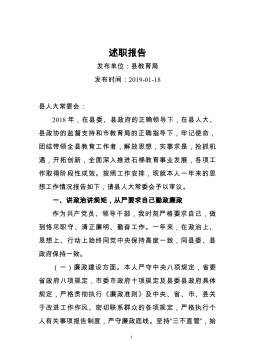 中共吴川市覃巴镇委书记述责述廉报告谭斐我于2018年12月就任覃巴镇党委书记,镇党委对本镇全面从严治党负主体责任,我是第一责任人。根据《中国共产党党内监督条例》和中共吴川市委办公室《关于开展述责述廉工作的实施意见》等有关规定,现述责述廉如下:一、执行政治纪律和政治规矩(一)在学习教育方面。在市委、市政府的坚强领导下,在市纪检监察部门的监督指导下,我带领全镇党员干部始终坚持以增强“四个意识”、坚定“四个自信”、做到“两个维护”为导向,引导全体干部职工坚定不移地贯彻党的十九大精神和习近平总书记治国理政理念。按月制定学习计划,规定具体的学习内容,通过组织召开了班子会议、全体干部职工大会和培训班集中学...