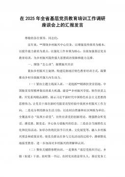 在2025年全省基层党员教育培训工作调研座谈会上的汇报发言 (1)
