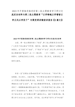 2023年开展推进推进好第二批主题教育学习研讨交流发言材料与第二批主题教育“以学铸魂以学增智以学正风以学促干”专题党课讲稿宣讲报告【2篇文】