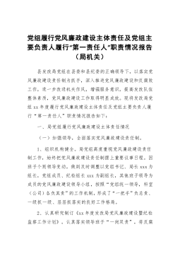 党组履行党风廉政建设主体责任及党组主要负责人履行“第一责任人”职责情况报告(局机关)