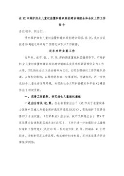 在XX市维护妇女儿童权益暨和睦家庭创建协调组全体会议上的工作报告