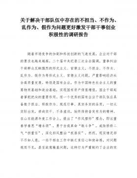 关于解决干部队伍中存在的不担当、不作为、乱作为、假作为问题更好激发干部干事创业积极性的调研报告