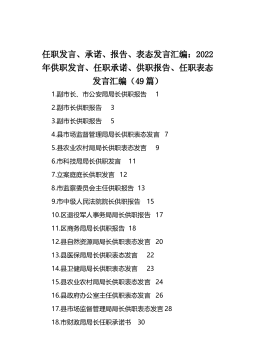 任职发言、承诺、报告、表态发言汇编2022年供职发言、任职承诺、供职报告、任职表态发言汇编(49篇)