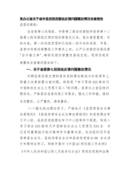 某办公室关于省市县巡视巡察组反馈问题整改情况自查报告县委巡察组:自省委第七巡视组、市委第三联动巡察组和县委第十三届第七轮巡察组反馈巡视巡察意见以来,我办高度重视、对标对表,第一时间把思想和行动统一到中央和省委、市委、县委对巡视巡察整改工作要求上来,从严从实做好巡视巡察"后半篇文章",确保巡视巡察整改落地见效。现将巡视巡察整改自查情况报告如下。一、关于省委第七巡视组反馈问题整改情况对照省委巡视反馈的落实党的理论路线方针政策和上级重大决策部署方面问题,特别是“学习贯彻XXX新时代中国特色社会主义思想不深入"的问题,县委办公室坚持问题导向,严格落实省委巡视工作要求,强化工作举措,做到务实整改、从严整...